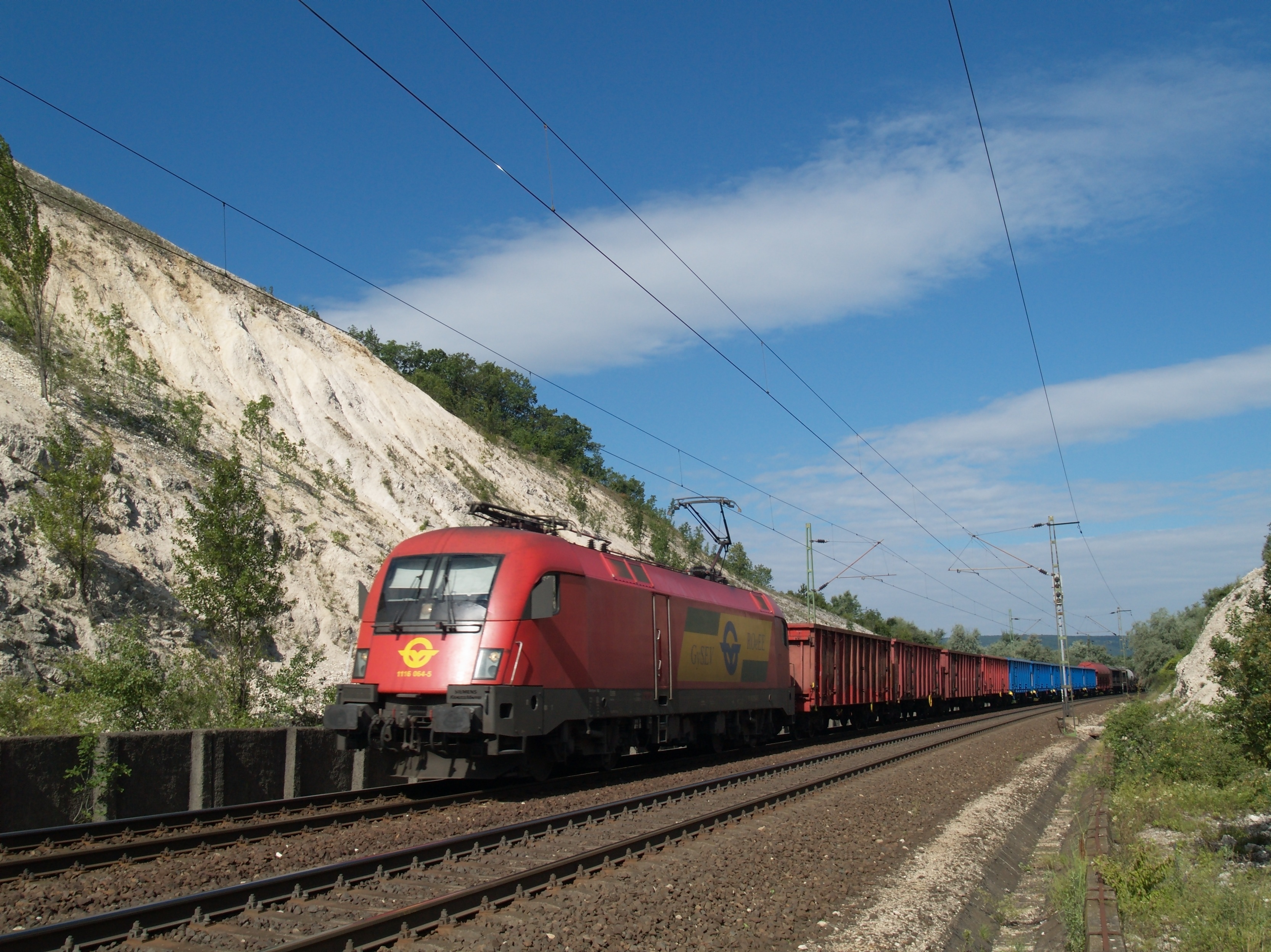 A GYSEV 1116 064-5 tehervonattal Szár megállóhelynél