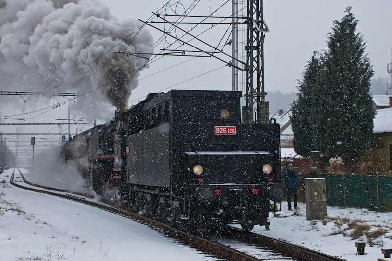 A ČSD 555 129 pályaszámú gőzmozdonyának a 926 129 pályaszámú szerkocsija Jablonné nad Orlicà állomáson