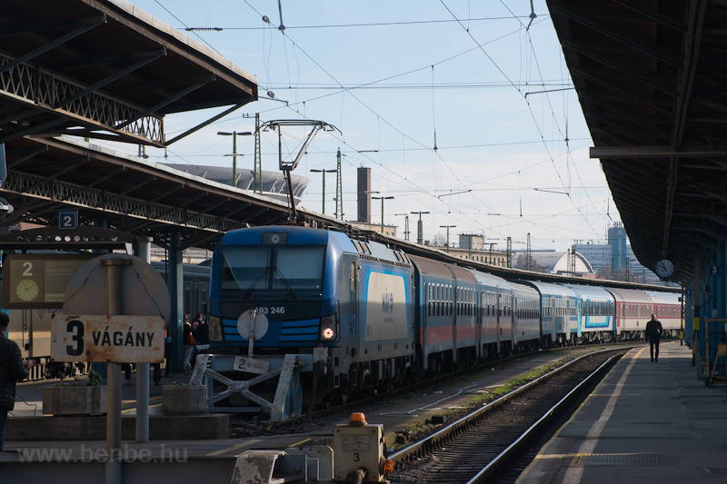 A MÁV - MÁV Rail Tours 193 246 pályaszámú Siemens ELL bér-Vectron Budapest-Keleti pályaudvaron egy Hernád InterCity vonat élén