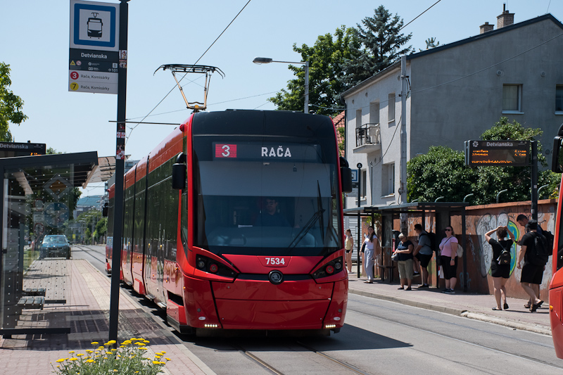 A Mestská hromadná doprava Škoda 30T 7534 Detvianská megállóhelyen