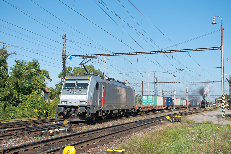 Az Akiem 186 370-3 konténervonattal Dévényújfalu állomáson