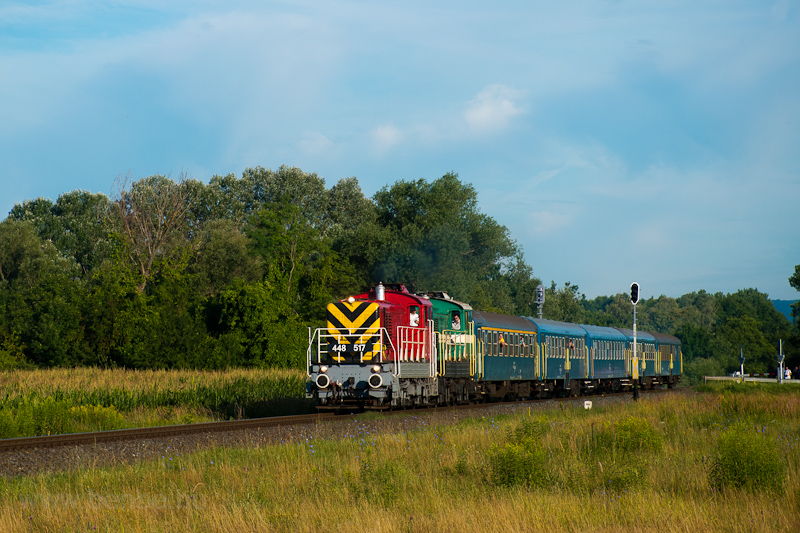 A MÁV-START 448 517 pályaszámú VFE motoros Bobó és a MÁV-HÉV/BHÉV DLXVI 733 pályaszámú HÉV-Bobó Tapolca és Nemesgulács-Kisapáti között