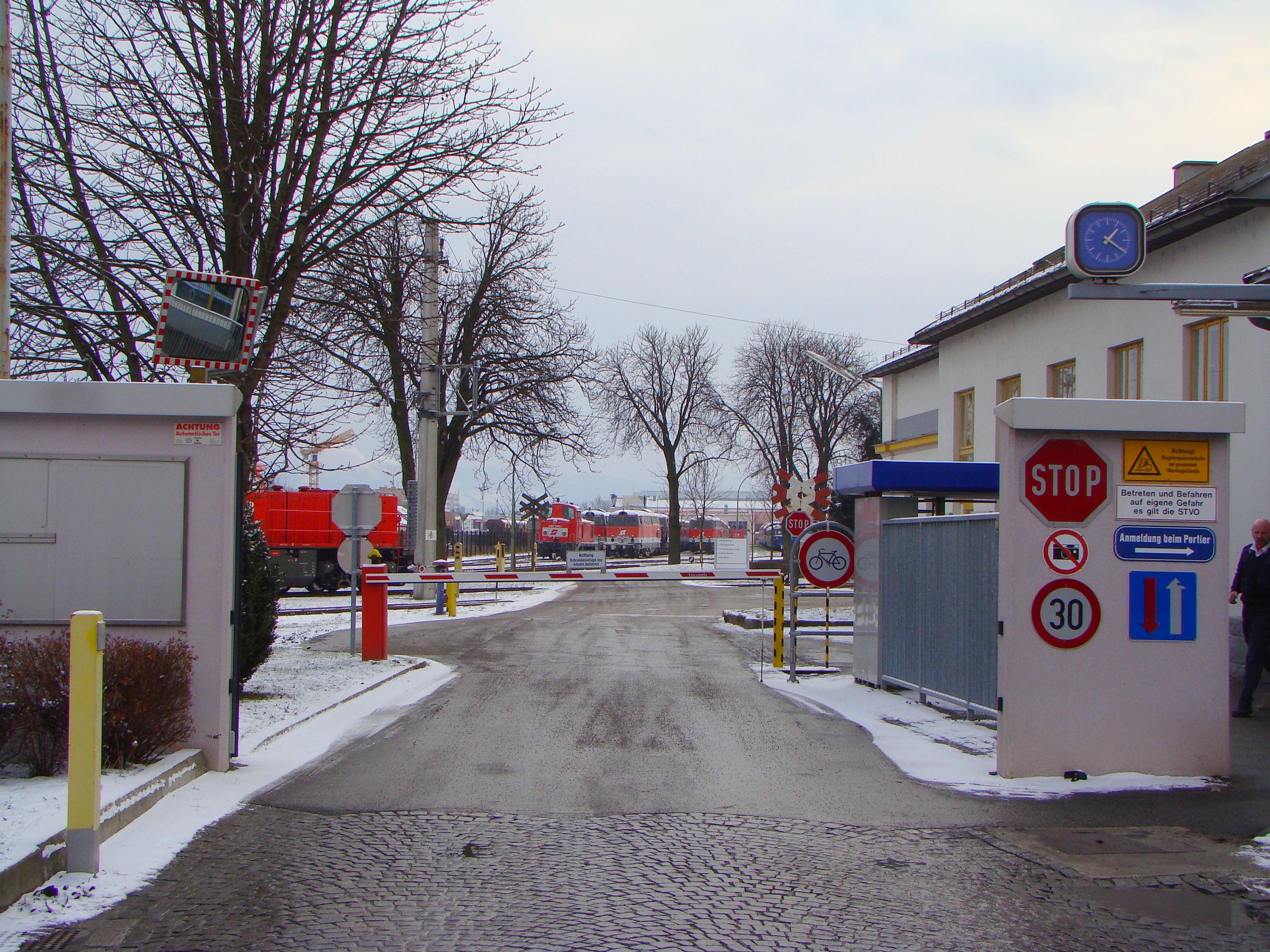 Az Alpenbahnhof szomszédságában fekszik az ÖBB Technische Service főműhelye, ahova a belépés szigorúan tilos, sőt, mint a STOP tábla alatti tábla is mutatja, még fényképezni is tilos. Ezt nagyon komolyan is veszik! Nekem szándékomban sem volt bemenni, csak ezt az utcáról készÃtett képet követtem el, de már ezzel felhÃvtam magamra a figyelmet és egy biztonsági őr rövid úton el is zavart.